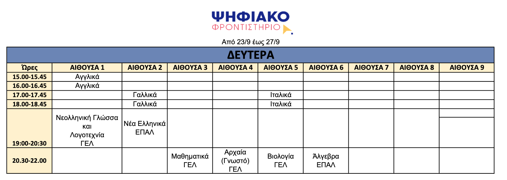 Θα έχετε το πρόγραμμα όλης της εβδομάδας με τις ώρες διδασκαλίας, που θα είναι επαρκείς για κάθε μάθημα.